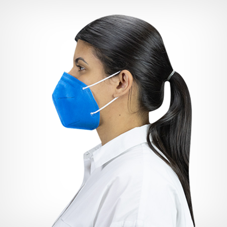 The respirator consists of a double-layer structure, made up of white non-woven fabric on the inside (in contact with the wearer’s face) and blue non-woven fabric on the outside. The inner layer is made up of an electrostatically treated polypropylene filtering material, guaranteeing a minimum filtering efficiency of 94% for particles, in accordance with NBR 13.698. The nose clip positioned between the two layers and the two elastic straps provide a secure and comfortable fit on the user’s head and nape.